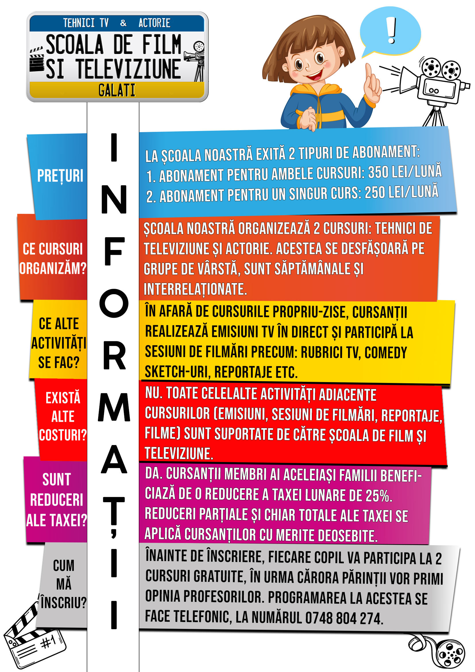 Scoala de Film si Televiziune Galati | str. Rapei nr. 1 |Tel: 0748 804 274
